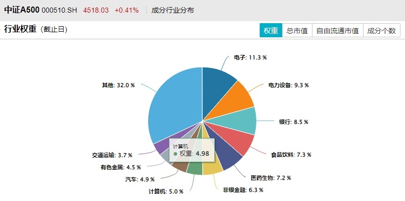 从权重行业漫衍来看,Wind金融终局最新数据表现,中证A500指数主要触及电子、电力成立、通讯、银行、食物饮料、大夫药物、非银、计较机等行业。
